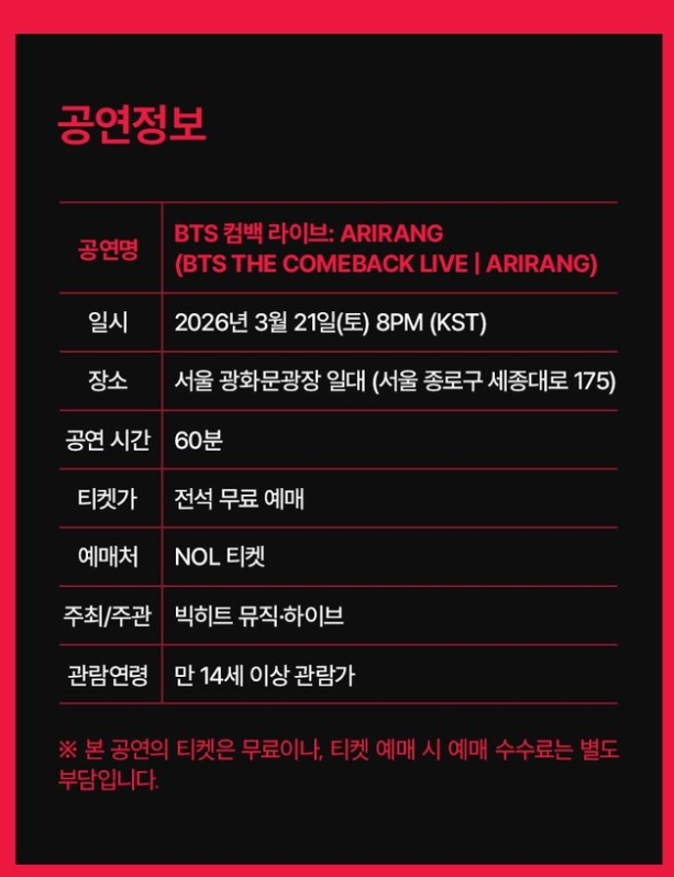 👉 BTS 광화문 공연 티켓 사전신청은 반드시 공식 채널만 이용하세요.