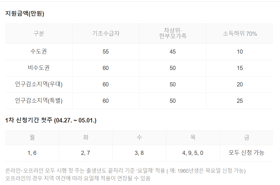 ⚠️ 1차 신청 ‘요일제’ 적용 (중요)