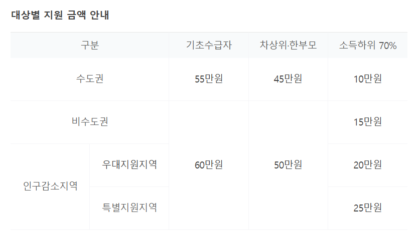 - 비수도권/인구감소지역: 60만원