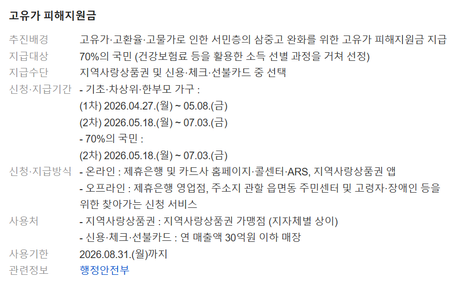 📅 고유가 피해지원금 사용기간