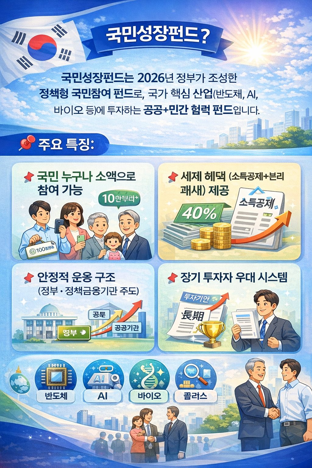 국민성장펀드는 2026년 정부가 조성한 정책형 국민참여 펀드로,