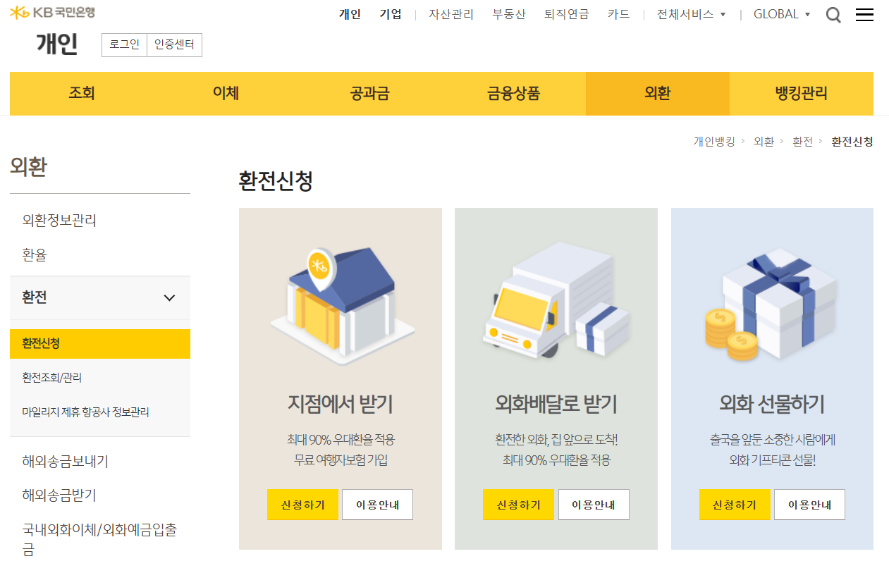 KB국민은행 스마트환전 → 우대율 최대 90%