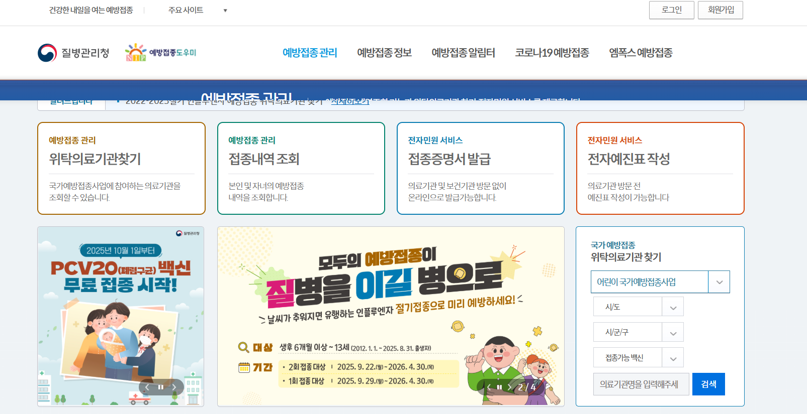 - 접종 대상자 및 일정 확인 후 미리 예약 필수