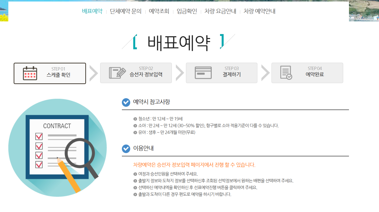 - 배편 예약 + 차량 선택