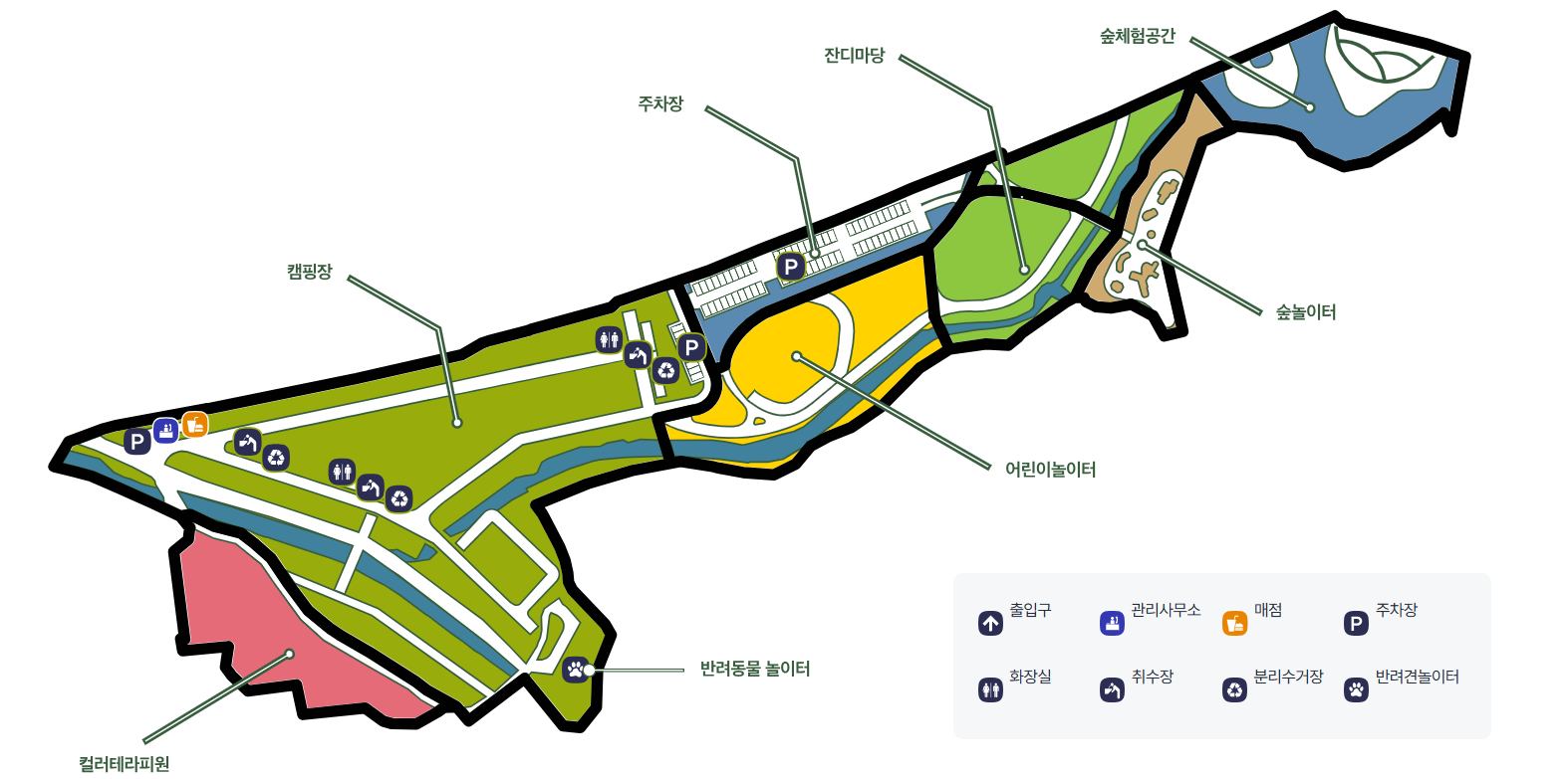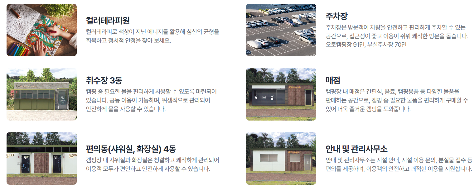 - 캠핑장 주변 산책로, 호수, 숲 체험 공간 등이 있으므로 여유 있게 일정 구성해 보세요.