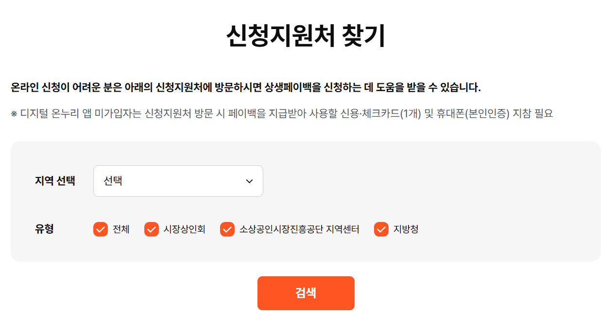온라인 신청이 어려운 경우, **전통시장 상인회, 소상공인지원센터, 은행 영업점** 등 오프라인 창구를 통해 도움받을 수 있습니다.