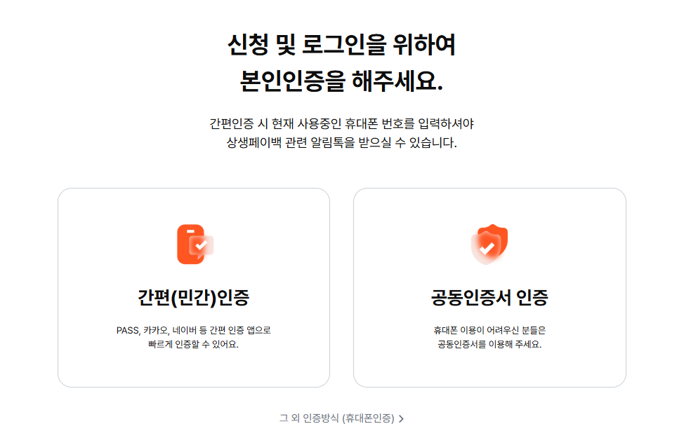 - 절차: 본인 인증 → 카드사 선택 → 신청 완료
