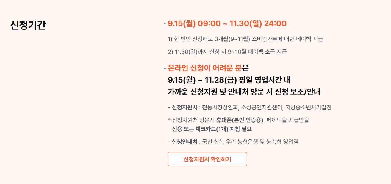 - 신청 사이트: 상생페이백.kr 또는 카드사 홈페이지