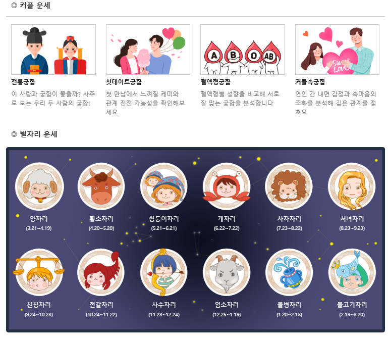 - 별자리운세, 꿈해몽 등 다양한 운세