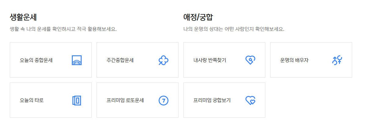 - 월간운세, 평생운세, 타로운세