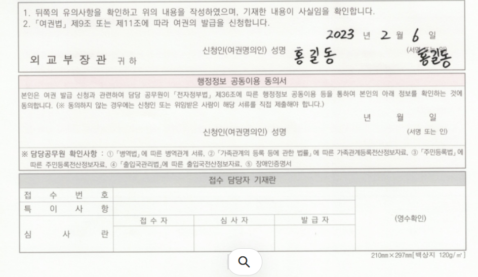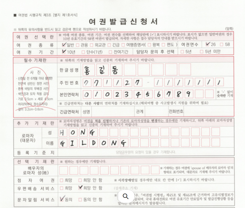 - 여권발급신청서