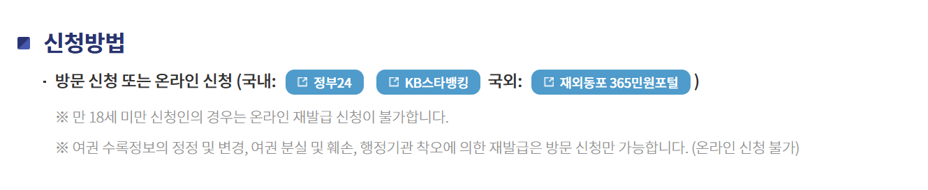 여권 분실 또는 신규 발급의 경우 반드시 방문 신청을 해야 합니다.