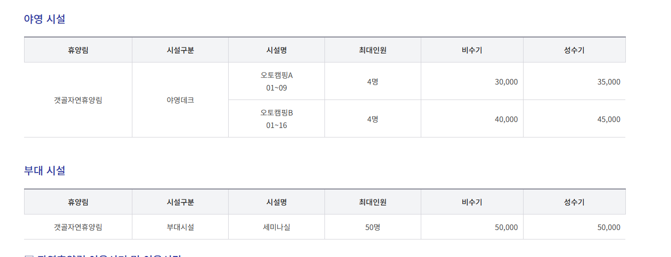 - 오토캠핑 B: 40,000 ~ 45,000원