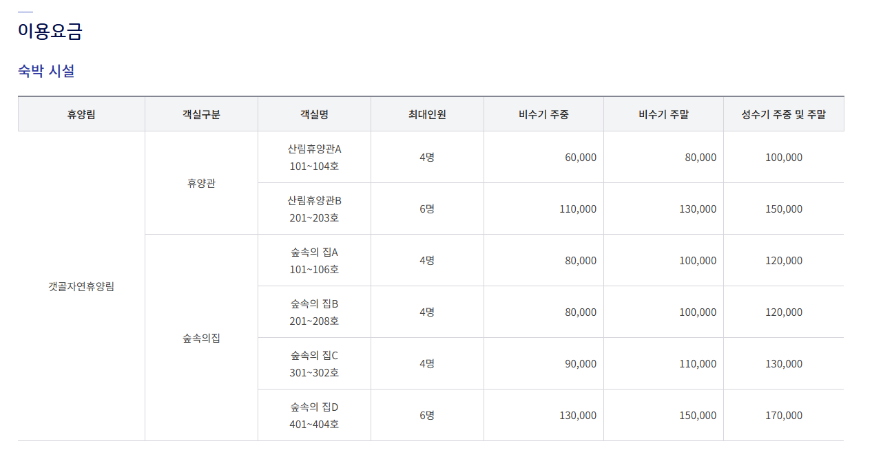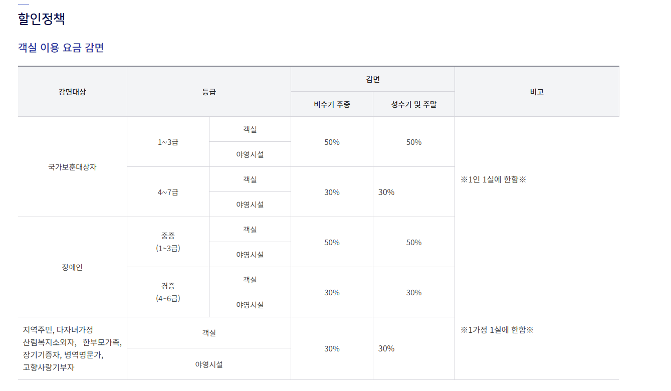 - 4인실: 80,000 ~ 130,000원