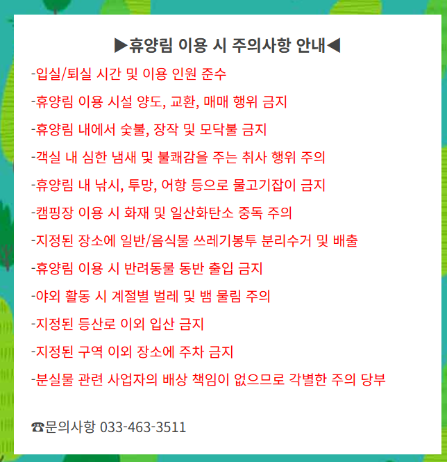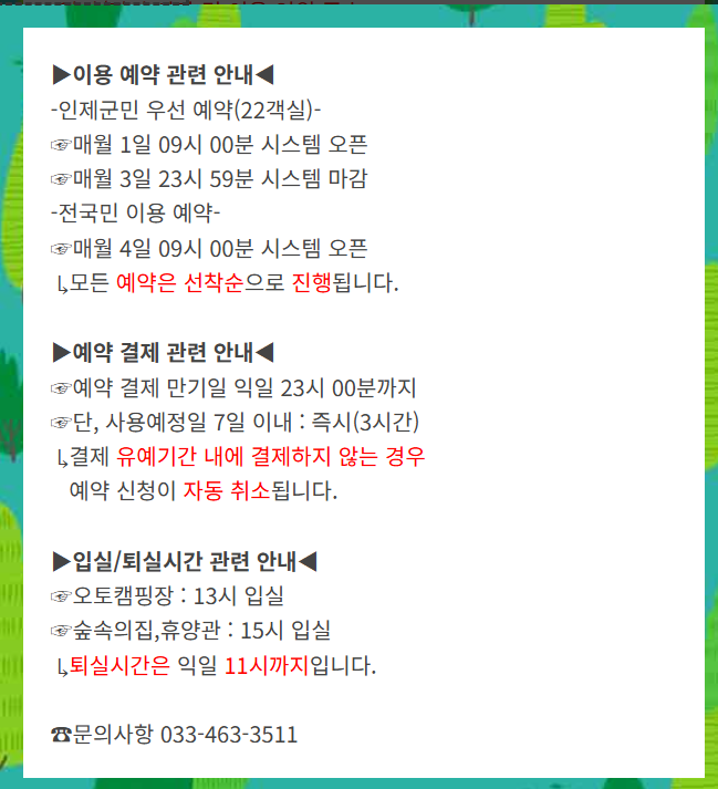 👉 인제 갯골 자연휴양림 예약입니다.