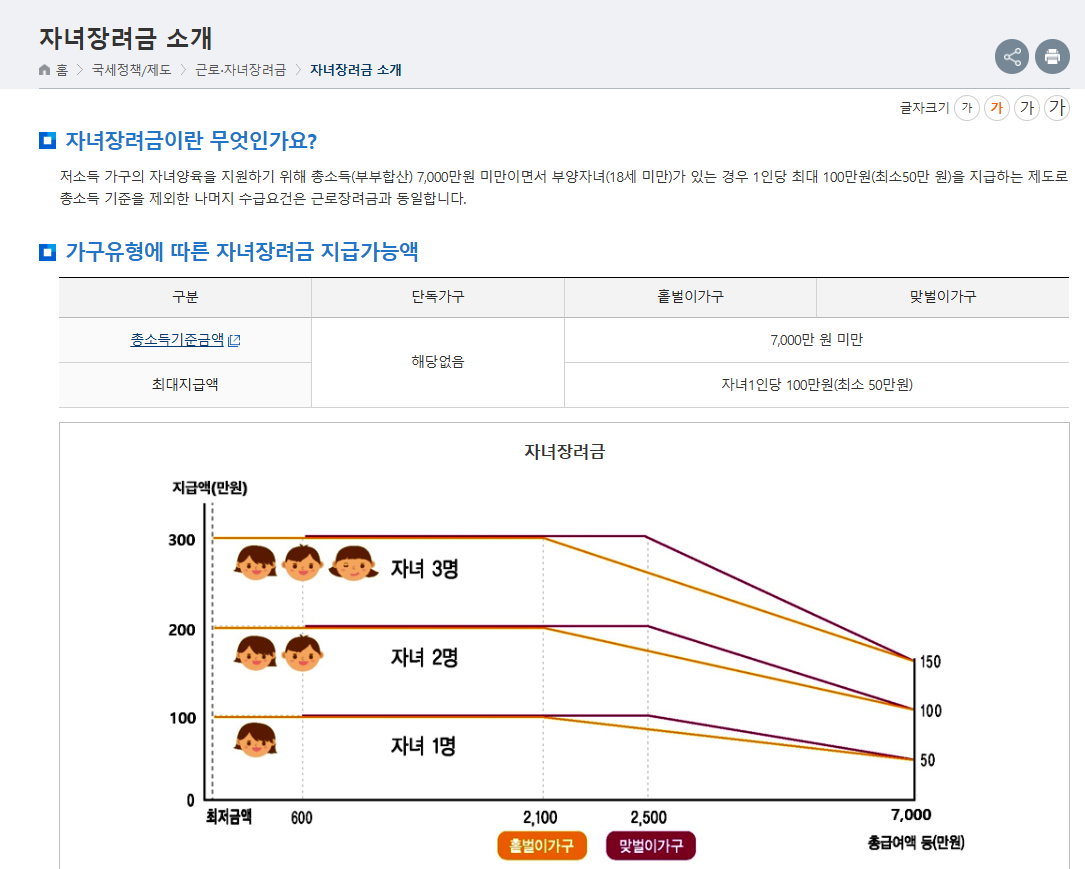가장 먼저 확인해야 할 사항은 자녀장려금 신청자격의 핵심인 소득과 재산 기준입니다.
