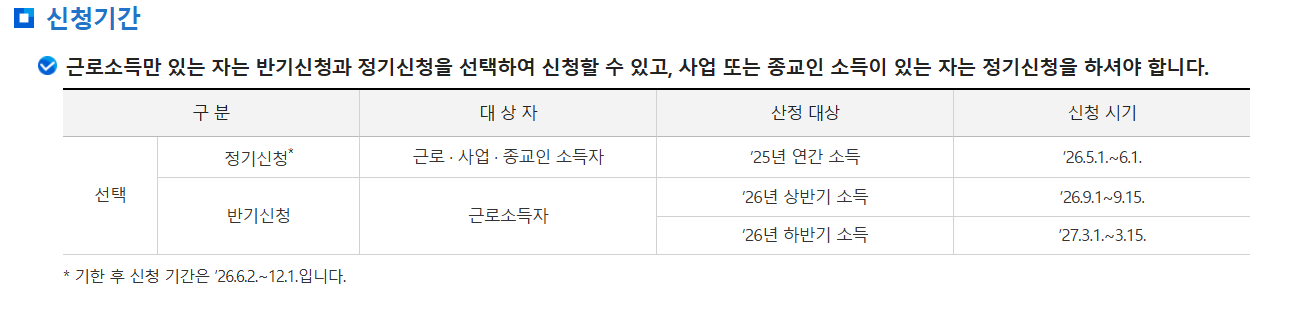 - 기한 후 신청: 2026년 6월 2일 ~ 11월 30일 (지급액의 5% 감액)