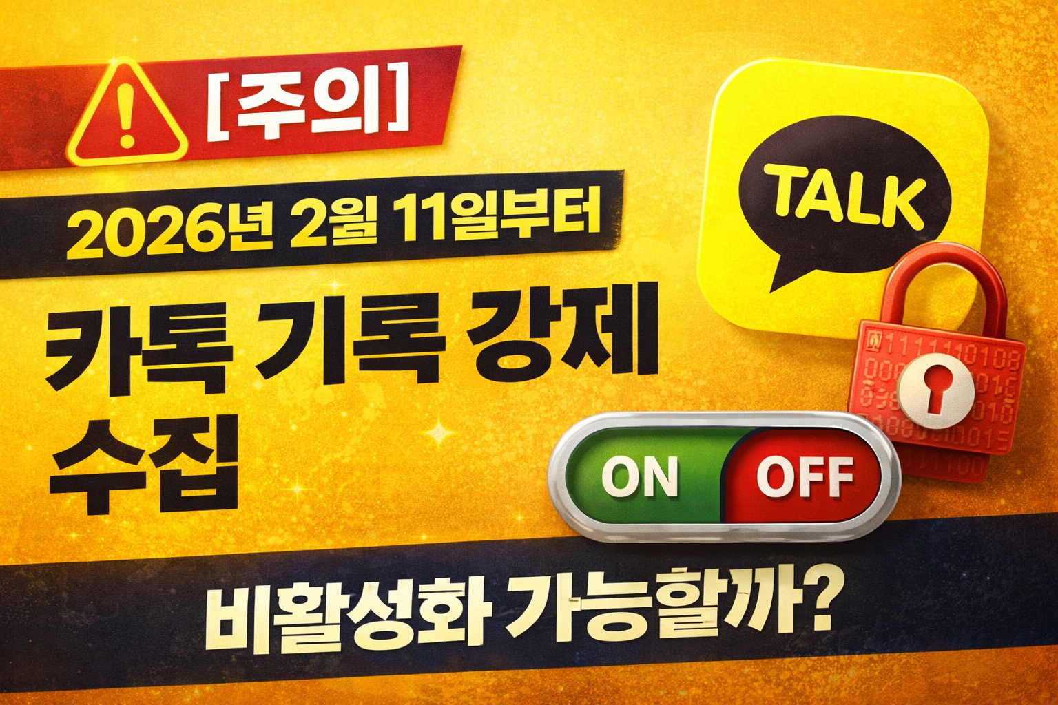 [주의] 2026년 2월 11일부터 카톡 기록 강제 수집 | 비활성화 가능할까? 2026년 2월 11일부터 카카오톡 약관 변경으로 이용기록·패턴 강제 수집 논란! 어떤 데이터가 수집되며 비활성화(거부)가 가능한지 정리했습니다.