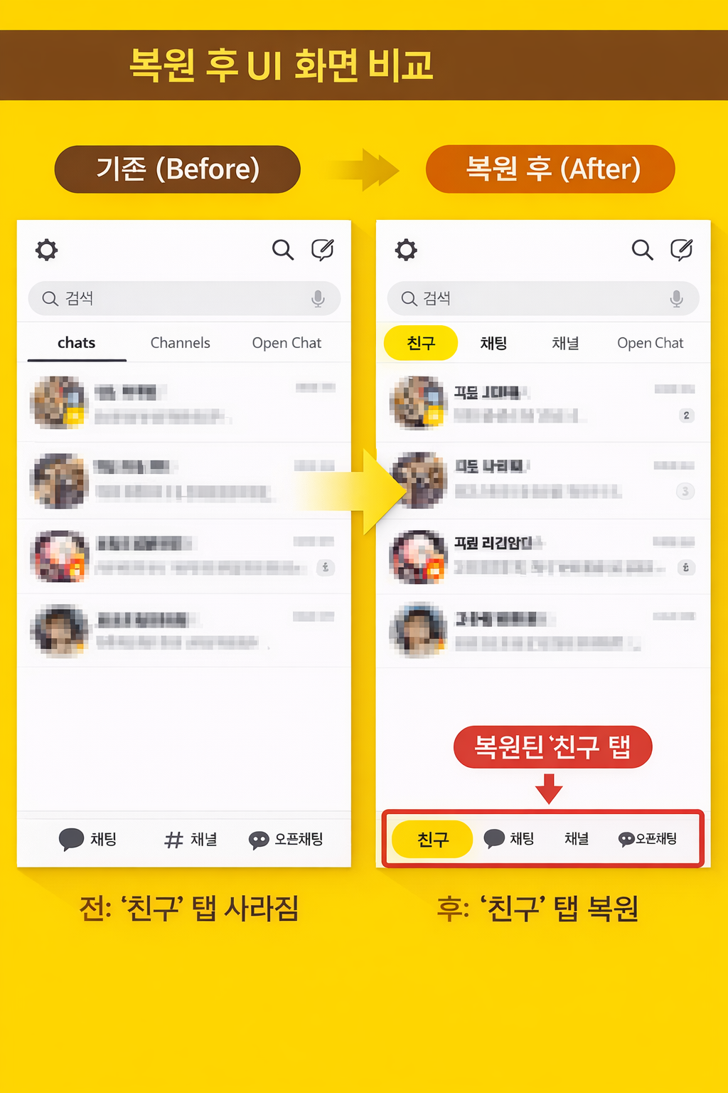 👉 친구탭 복원은 이번 카카오톡 업데이트의 핵심 기능입니다.