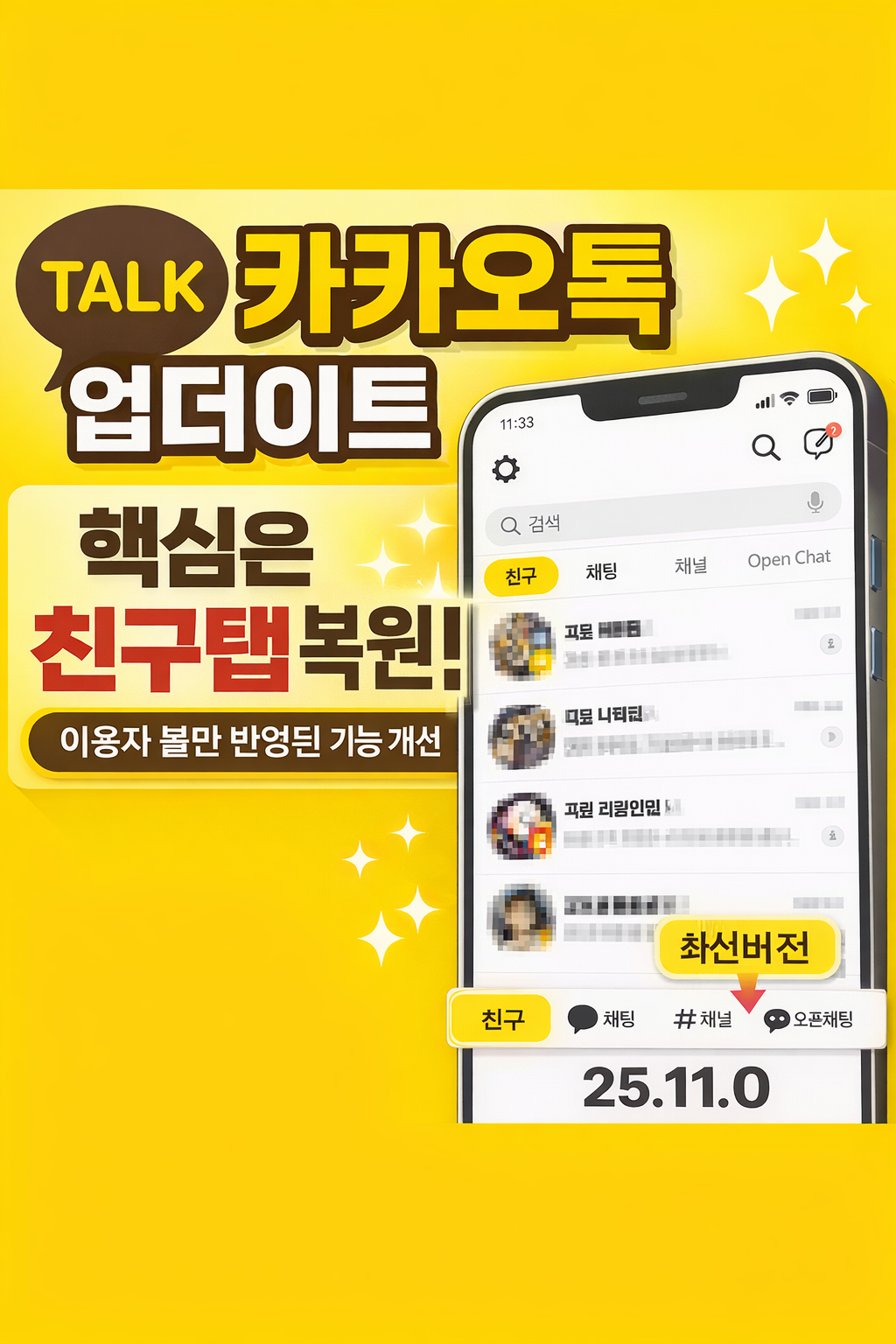 2025년 12월, 드디어 카카오톡 업데이트의 핵심이었던 친구탭 복원이 이루어졌습니다.