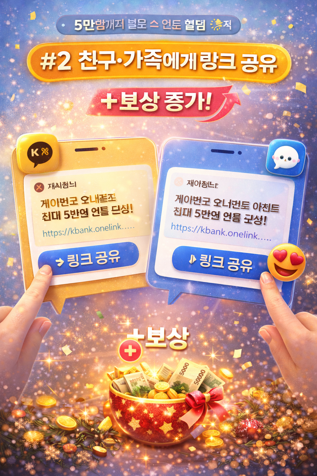 - 내가 공유한 링크로 친구가 참여하면 내 계정에도 보상 증가