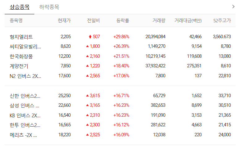 특히 눈에 띄는 것은 반도체 및 2차전지 대형주의 강세입니다.