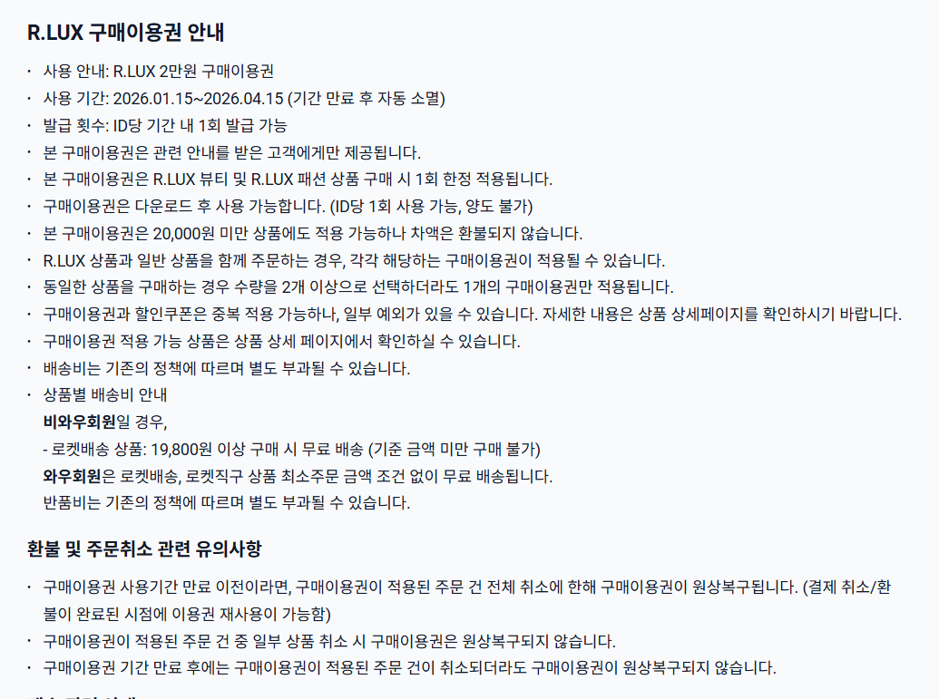 | 알럭스 이용권 | 20,000원 | 뷰티·패션 상품 |
