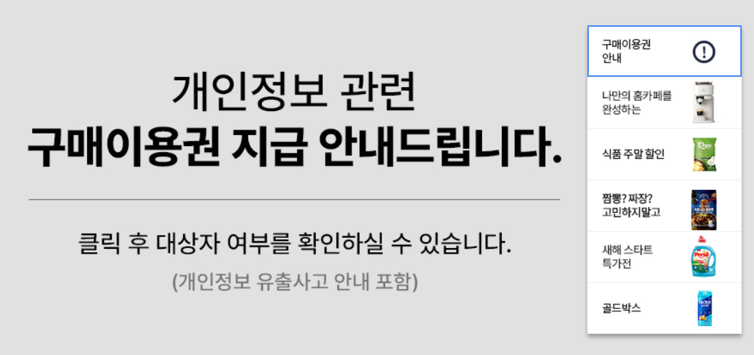 쿠팡이 최근 개인정보 유출 피해 고객을 대상으로 지급하는 보상쿠폰입니다.
