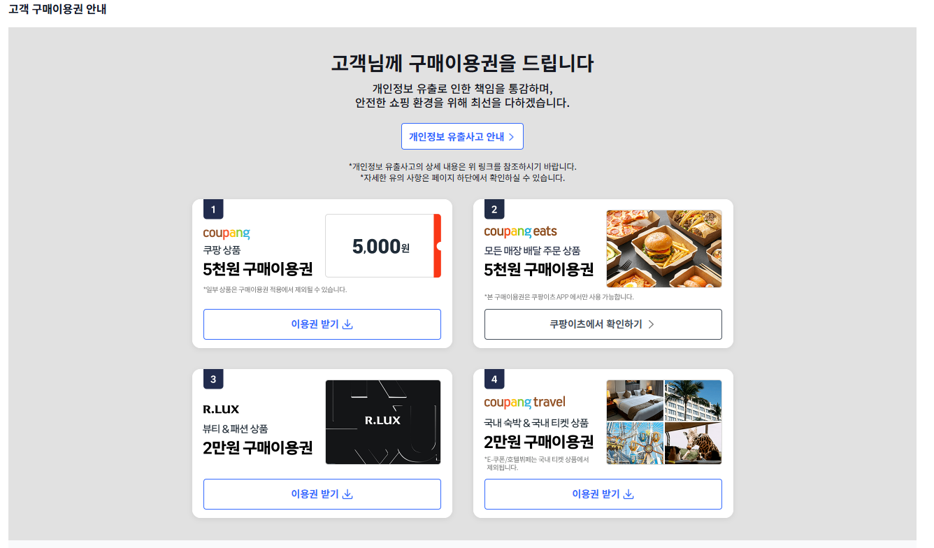 👉 **쿠팡에서 최대 5만원 상당의 보상쿠폰(구매이용권)**이 지급되기 시작했습니다.