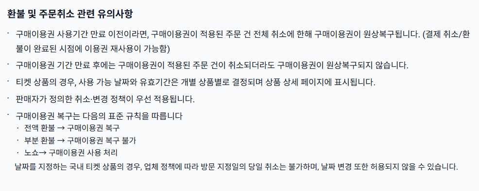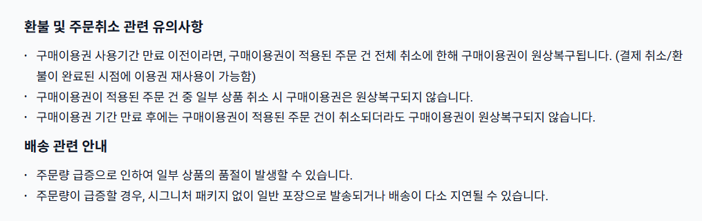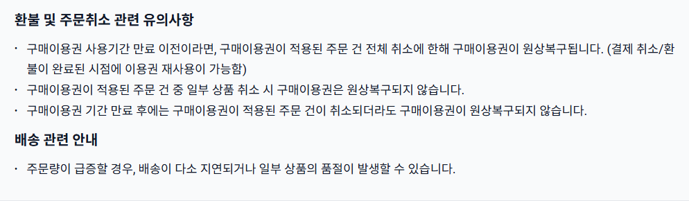 → 예: 2만원 쿠폰으로 1만5천원 상품 구매 시 나머지는 소멸.