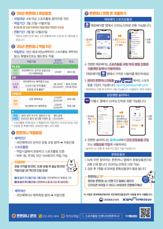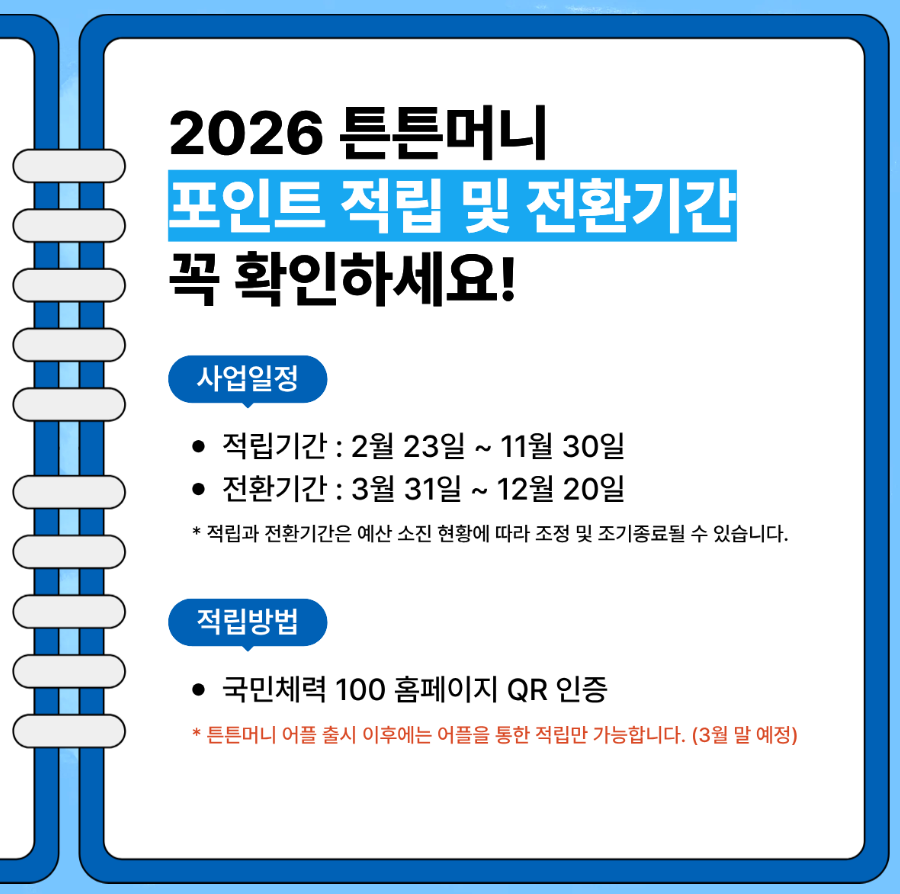 최근 튼튼머니가 2026년에 새로 활성화되면서 많은 분들이 “이게 뭐예요?”, “어떻게 적립하나요?”, “어디에서 사용할 수 있나요?”를 검색하고 있습니다. 실제로 운동하면서 포인트를 현금처럼 쓸 수 있는 시스템이기 때문에 관심도가 높습니다.