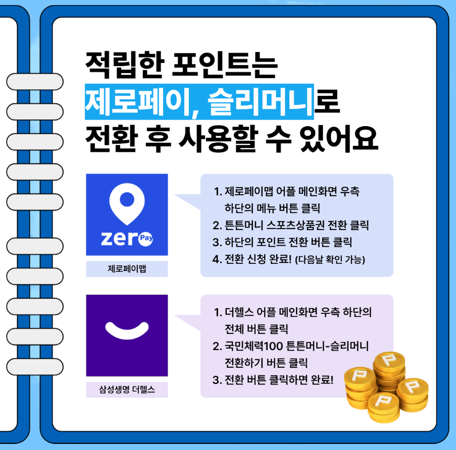 적립된 튼튼머니는 포인트 그대로 스포츠상품권으로 전환하여 사용해야 합니다.