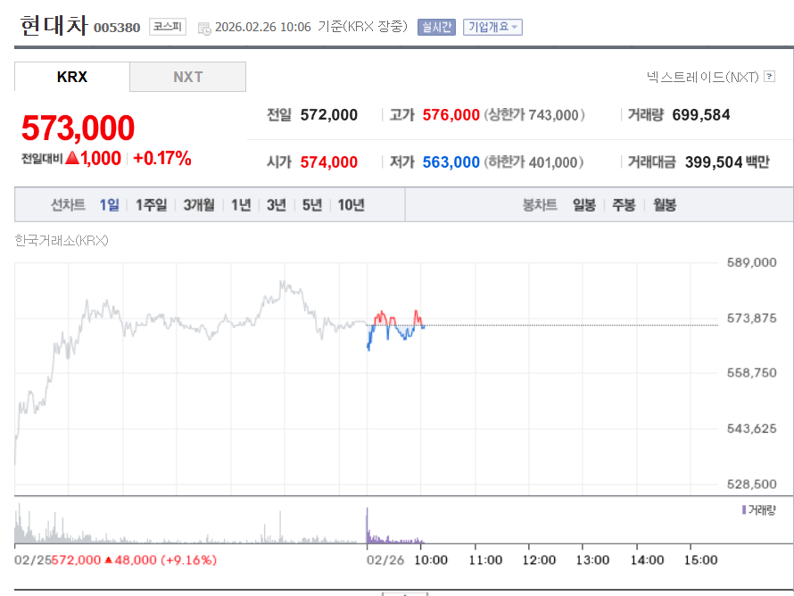 📊 1. 현대차 현재 주가 흐름 (2026년 2월 기준)