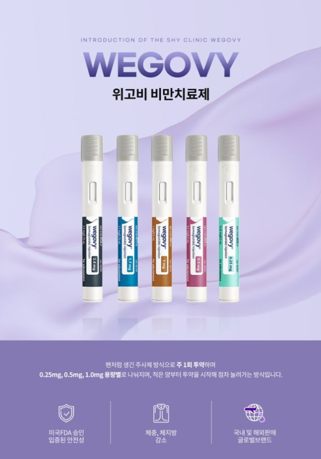 **위고비(Wegovy)**는 미국 FDA에서 승인받은 비만 치료제로, GLP-1 계열의 호르몬 유사 작용을 통해 식욕 억제 및 포만감 증가를 유도합니다.
