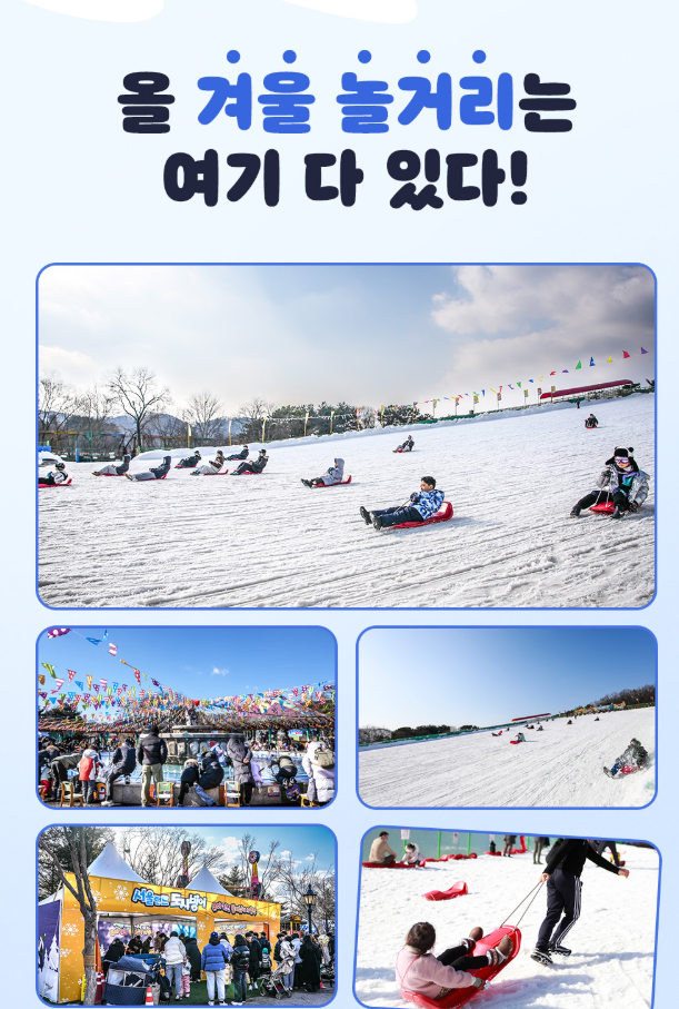 눈썰매 + 놀이공원 + 겨울축제까지 한 번에 즐길 수 있는 곳을 찾는다면, 에버랜드와 서울랜드 눈썰매장이 최고의 선택입니다.