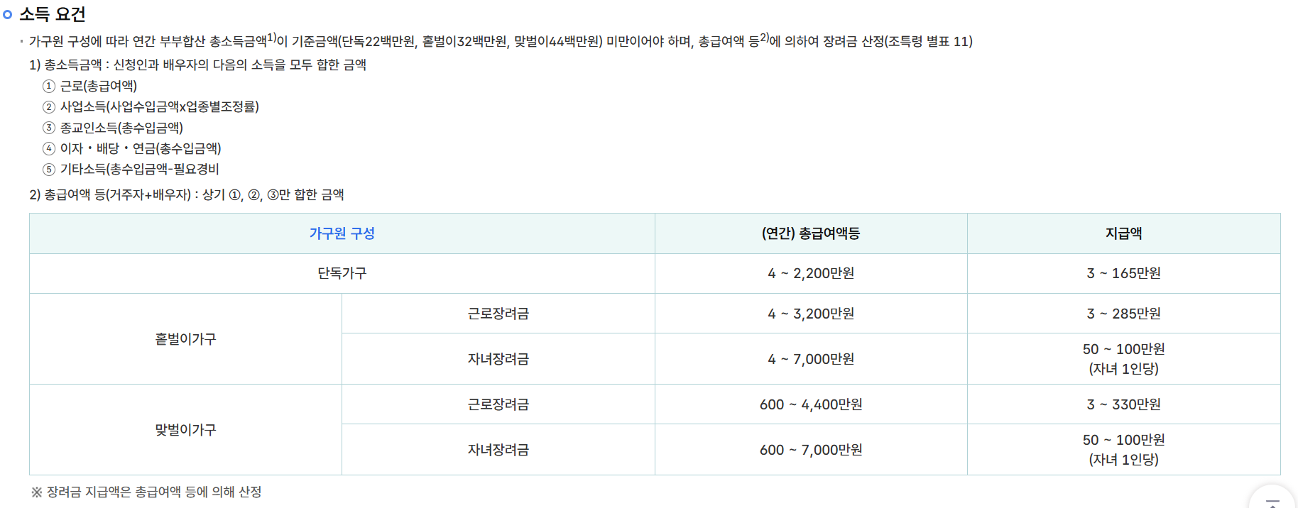 2️⃣ 소득 요건 (2025년 소득 기준)