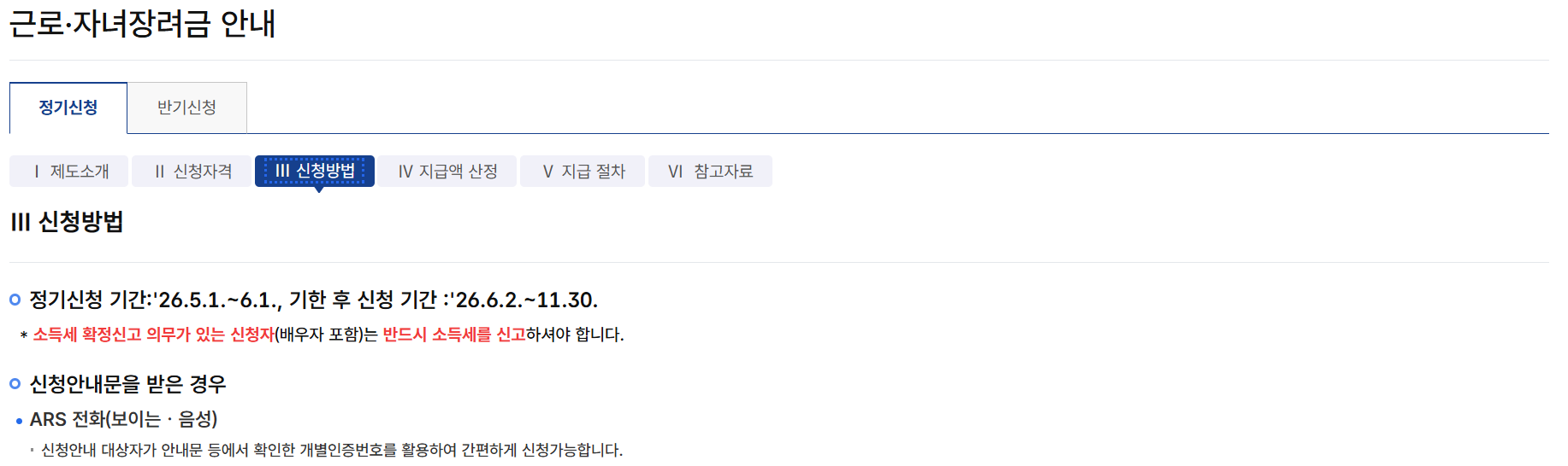 2026근로장려금 신청기간은 꼭 기억하세요.