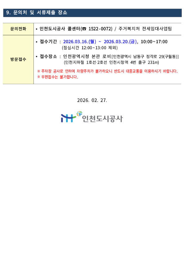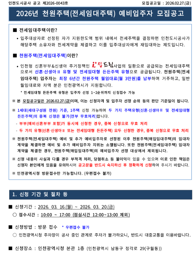 지금까지 2026 인천 천원주택 예비입주자 모집 공고 내용을 정리해봤습니다.