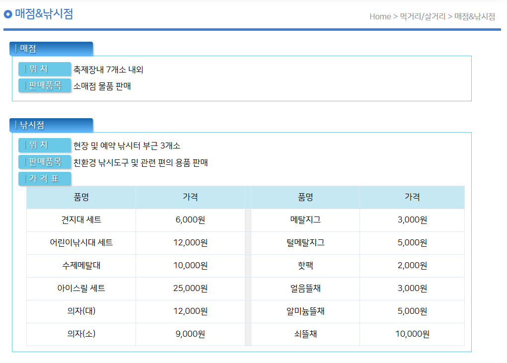 | 중등생 이상 일반 | ₩15,000 | 농특산물 교환권 ₩5,000 |