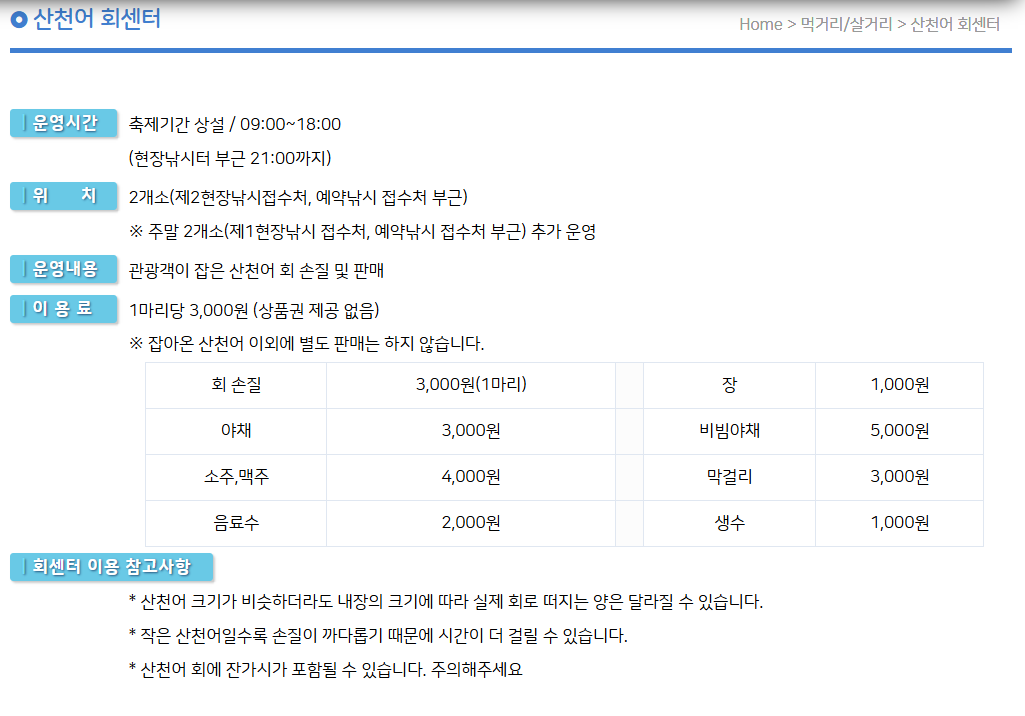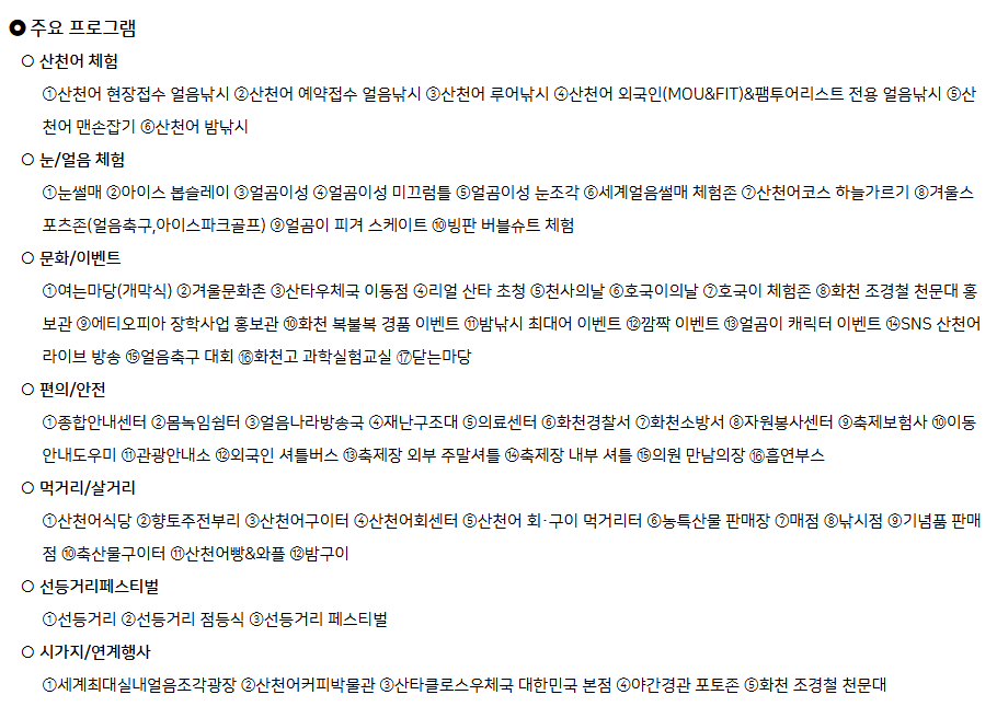 | 세계 얼음 썰매 | ₩5,000 | 화천사랑상품권 ₩3,000 |
