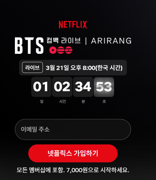 BTS 광화문 공연 넷플릭스 전 세계 생중계 보는 방법 (3월 21일 라이브 실시간 시청)
