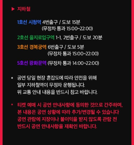 - 공연 당일 오전 ~ 행사 종료 시