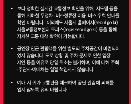 ✔ 공연 시작 2~3시간 전 도착