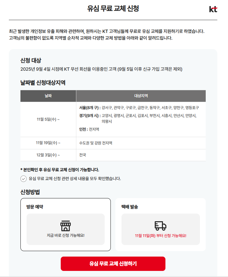 📌 KT 유심 무상교체 신청 방법 (2025년 최신 기준)