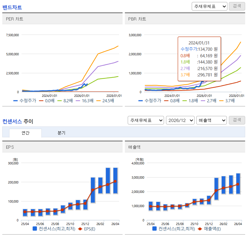 - 목표주가: 최저 130만 원에서 최고 180만 원 선까지 제시 (액면분할 전 기준 시뮬레이션 포함)